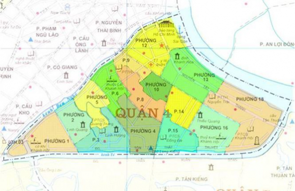 Bản đồ vị trí dự án Charmington Iris trong khu vực các phường của quận 4