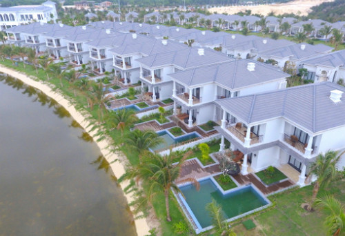 Nét ấn tượng, đồng thời cũng là điểm nhấn nổi bật tại dự án nghỉ dưỡng Vinpearl Bãi Dài Nha Trang là hệ thống hồ bao quanh được thiết kế với phong cách đập tràn.