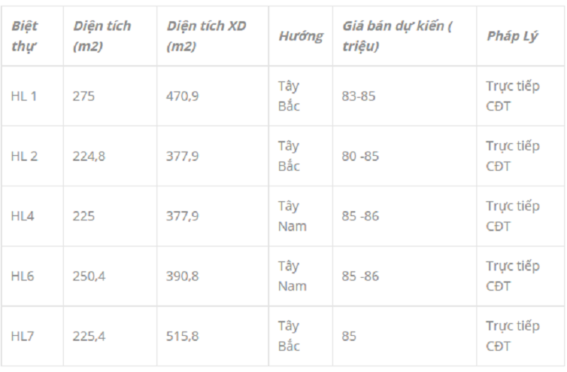 + Biệt thự Hoa Lan 02: số lượng 15 căn, diện tích thiết kế từ 224.8 – 526.9m2