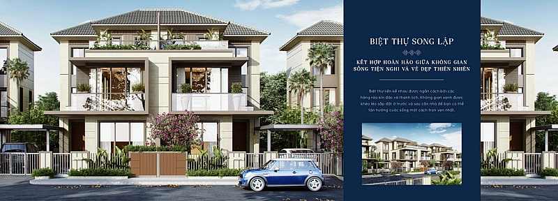 + Biệt thự song lập: toàn bộ dự án có 184 căn biệt thự theo mô hình song lập là sự gắn kết hoàn hảo giữa không gian sống tiện nghi cùng vẻ đẹp thiên nhiên. Hai biệt thự liền kề nhau được ngăn cách bởi các hàng rào kín đáo; thanh lịch. Môi trường sống xanh và không gian sống được bố trí khéo léo ở phía trước và sau căn nhà giúp bạn tận hưởng được cuộc sống một cách hoàn hảo nhất.
