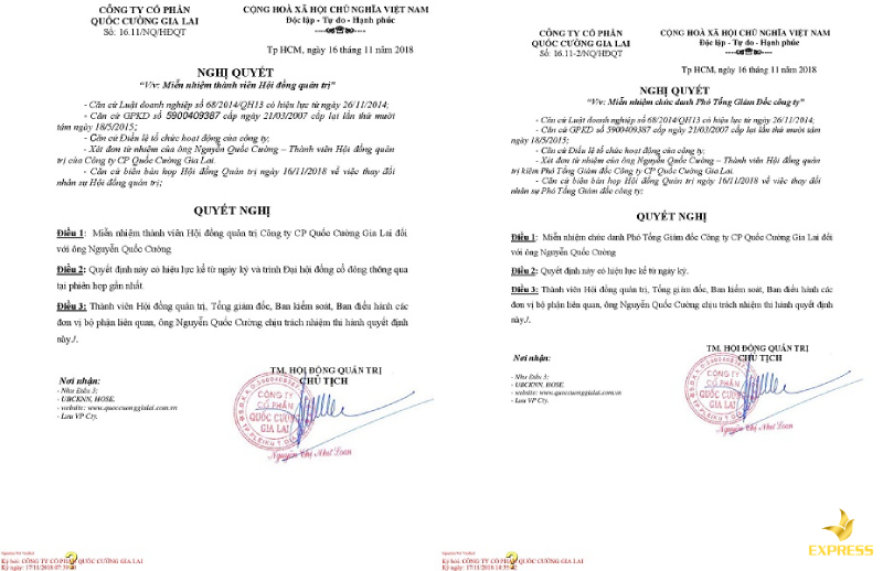 Nghị quyết miễn nhiệm Thành viên HĐQT – Phó TGĐ đối với ông Nguyễn Quốc Cường
