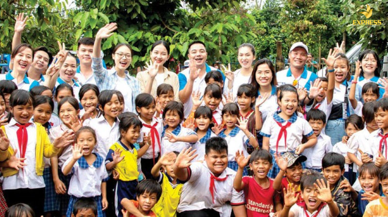 Dự án trao tặng sách vở cho học sinh khó khăn.