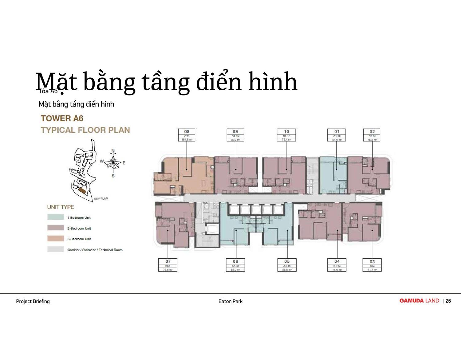 Theo thông tin ban đầu, dự án chung cư Eaton Park được triển khai gồm 2000 căn hộ cao cấp bố trí tại 2 phân khu chính và gồm 6 tòa tháp căn hộ. Trong đó, diện tích căn hộ của dự án đa dạng để khách hàng lựa chọn như: