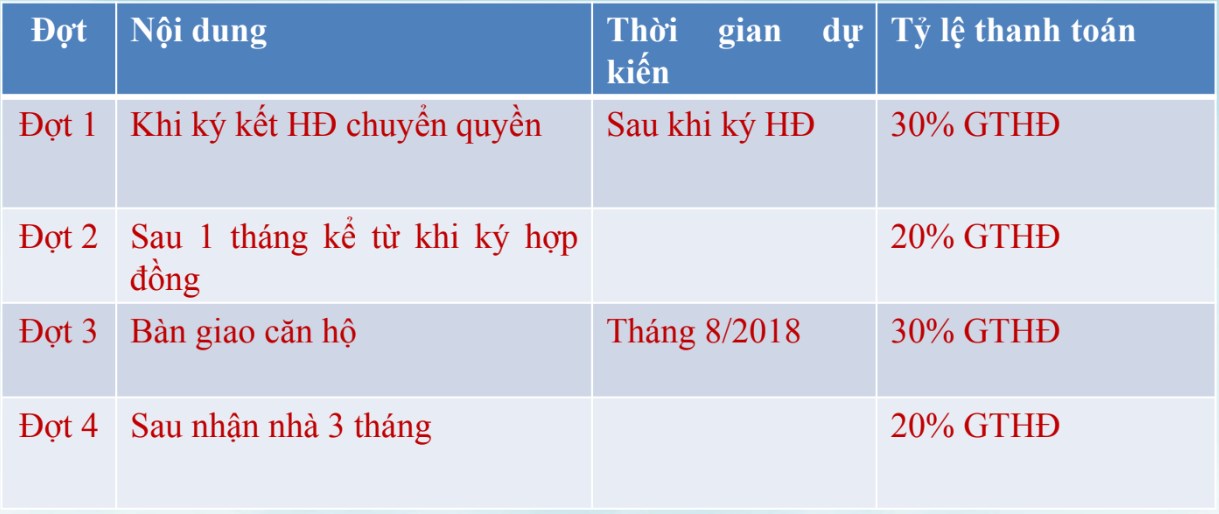 Các loại hình căn hộ của dự án như sau: