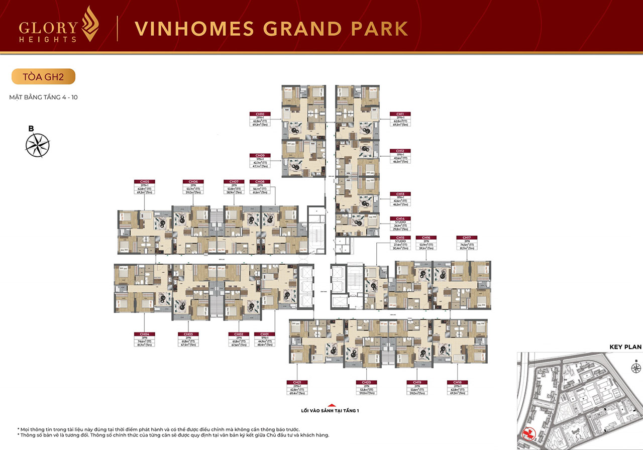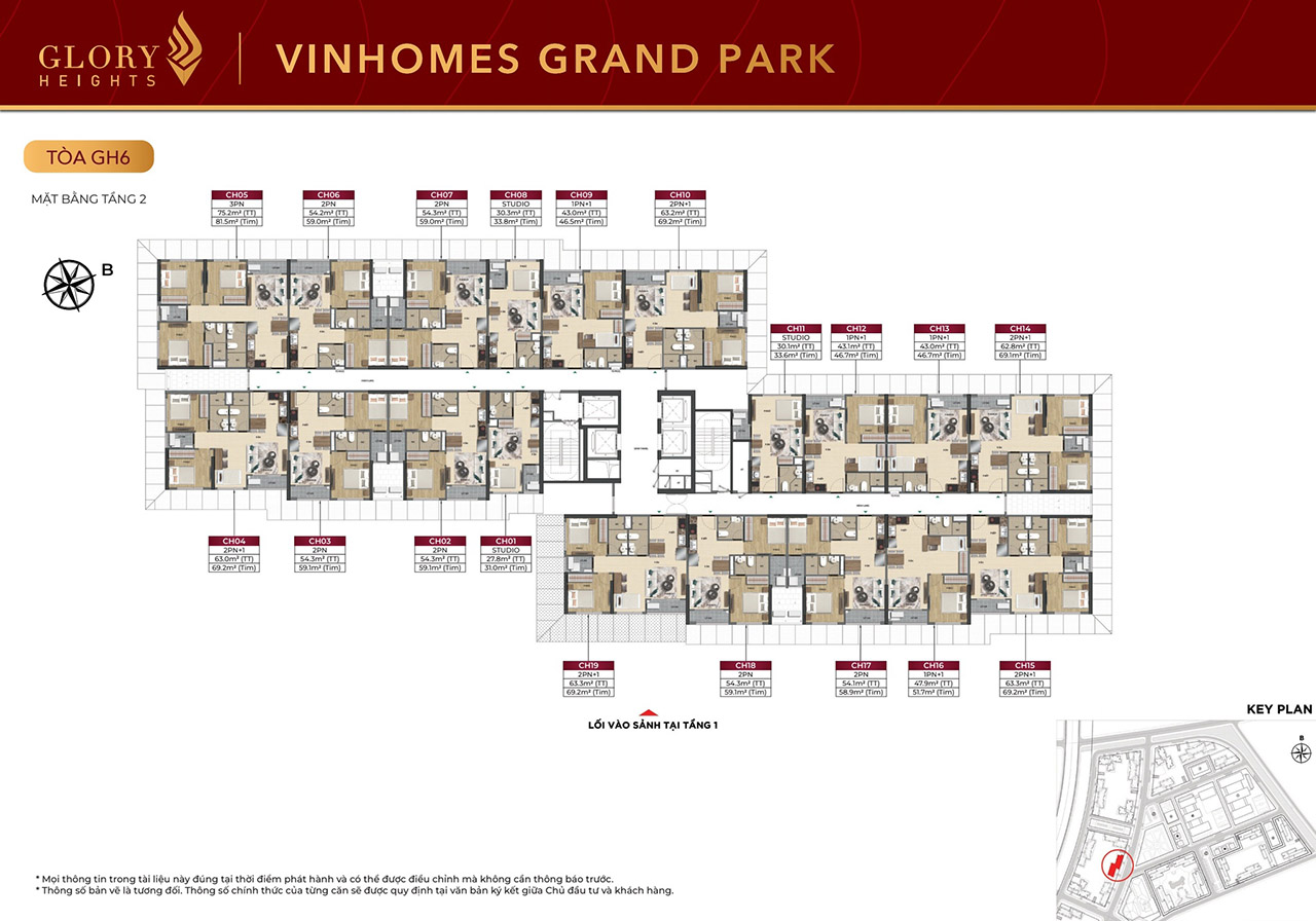 Vị trí tòa GH6 nằm ngay cạnh TTTM Vincom Megamall và quảng trường Golden Eagle. Tại toà tháp có thể bố trí các căn hộ với số lượng như sau: