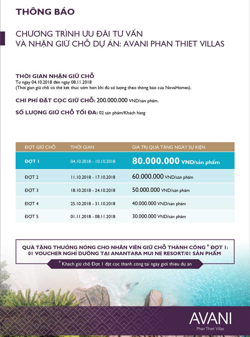 Theo chủ đầu tư, Dự án biệt thự biển Novaland Mũi Né Phan Thiết sẽ là Thiên đường nghỉ dưỡng hoàn hảo cho cư dân Việt Nam cũng như khách quốc tế, giúp thúc đẩy du lịch của tỉnh Bình Thuận nói riêng và cả nước nói chung.