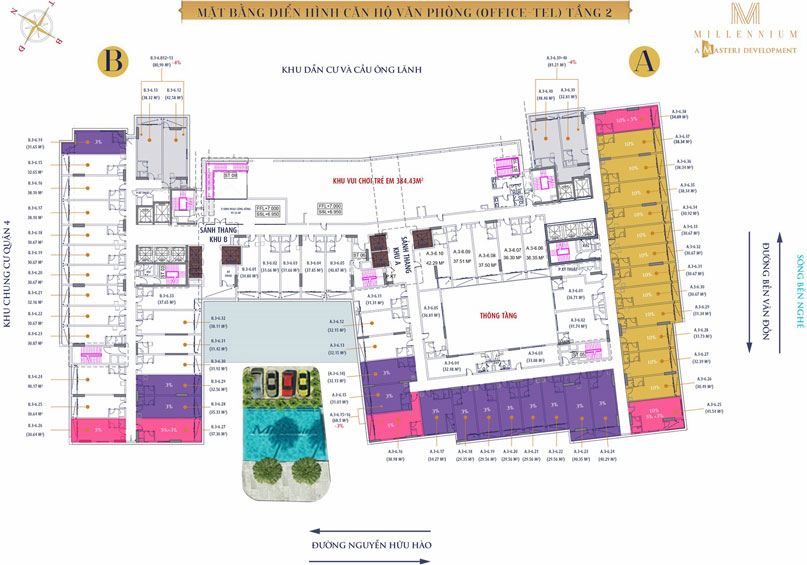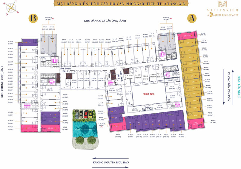 MẶT BẰNG THIẾT KẾ CĂN HỘ OFFICE TEL MILLENNIUM MASTERI QUẬN 4