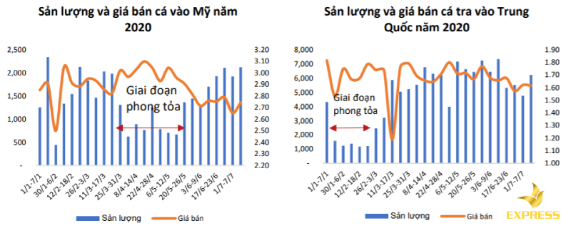 Sản lượng và giá bán cá vào Mỹ và Trung Quốc năm 2020 của Vĩnh Hoàn