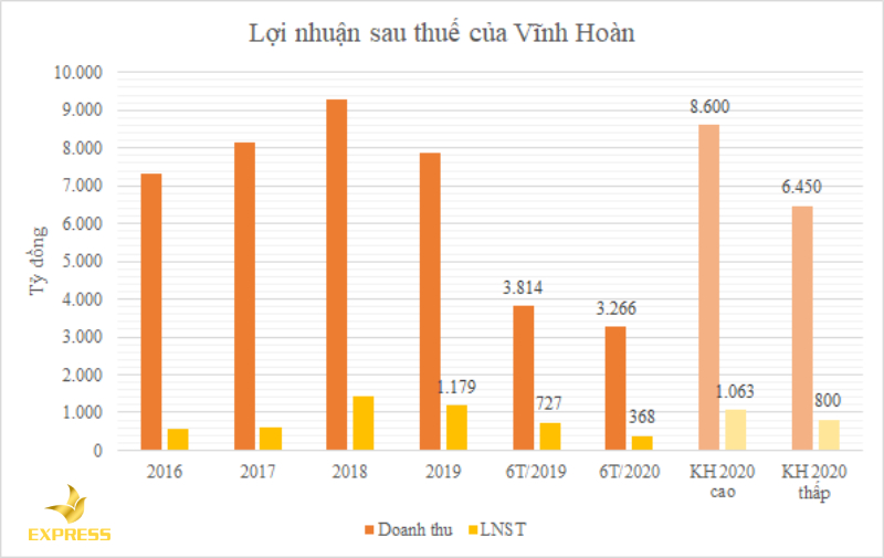 Lợi nhuận sau thuế của Vĩnh Hoàn từ năm 2016-2020