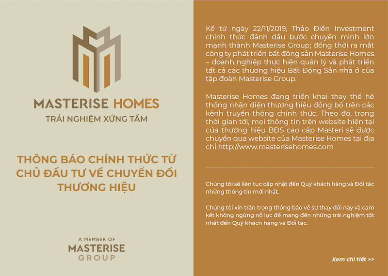 Chủ đầu tư Masteri Homes là một công ty mới được thành lập vào thời điểm cuối năm 2019 vừa qua thuộc Masteri Group. Tập đoàn này trước đây có tên gọi là Thảo Điền Investment đã rất nổi tiếng trên thị trường bất động sản phẩm khúc cao cấp khi đã cung cấp hàng loạt các sản phẩm mang thương hiệu Masteri và M-One chủ yếu tại thành phố Hồ Chí Minh.