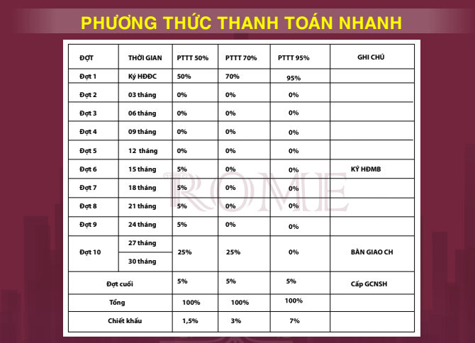 Dự án Rome Diamond Lotus đáp ứng mọi nhu cầu của đa dạng loại hình khách hàng với diện tích căn hộ đa dạng từ 50m2 đến 91m2 với diện tích mặt thoáng lớn, có cách bố trí hợp lý và tinh tế giúp phù hợp với đặc tính sinh hoạt của các gia đình Việt.