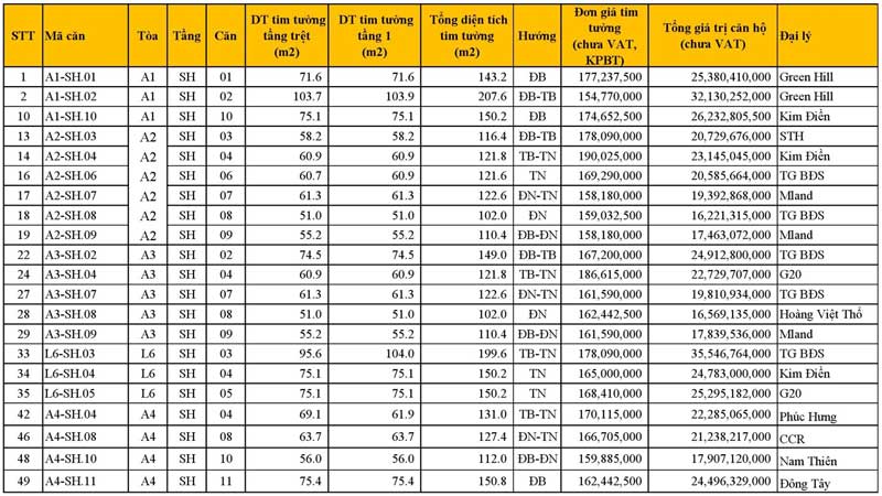 – Số tầng hầm dự án: 1 đến 4 tầng hầm.