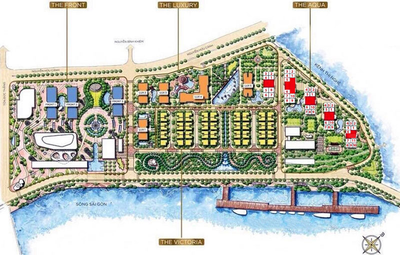 – Đường thủy: Mặt tiền của sông Sài Gòn rộng hơn 150m có chiều dài 1km với bến du thuyền đẳng cấp 5 sao.