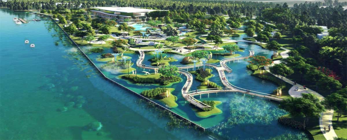 + Khu vui chơi giải trí đạt tiêu chuẩn đẳng cấp quốc tế rộng 25 ha, bố trí thành 17 phân khu chức năng bao gồm: công viên nước; khách sạn hiện đại; khu vui chơi giải trí; bến du thuyền.