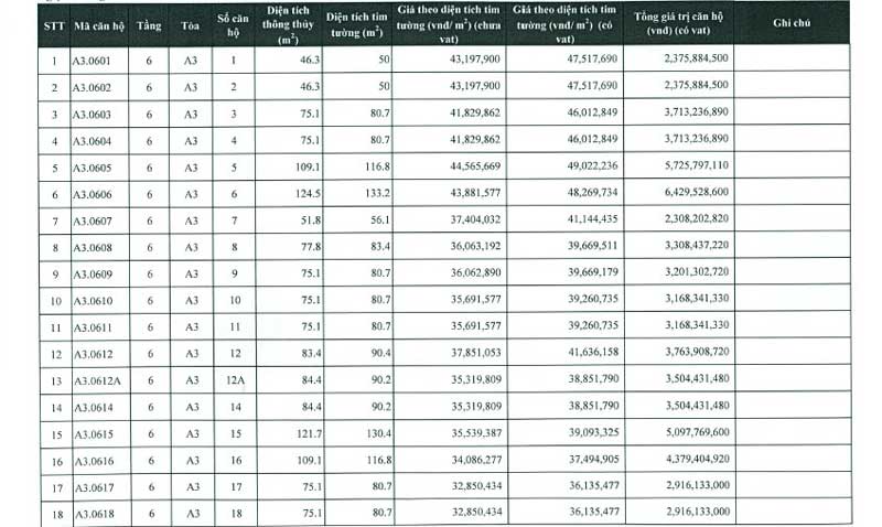 + Diện tích căn hộ dịch vụ 16.523 m2 – tầng 3,4,5 và một phần tầng 6.