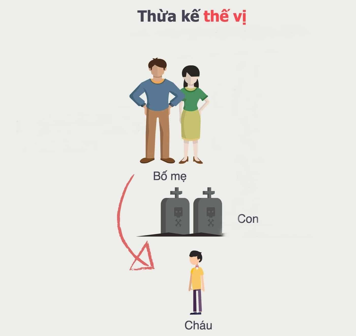 Chính vì vậy, thừa kế thế vị sẽ được xem xét khi hàng thừa kế thứ nhất ngoài người đã chết trước thời điểm với người để lại phần di sản thì vẫn còn những người khác. Trong trường hợp hàng thừa kế thứ nhất không còn ai thì xem xét đến hàng thừa kế thứ hai, khi đó người cháu sẽ nhận được một phần di sản xét theo hàng thừa kế.