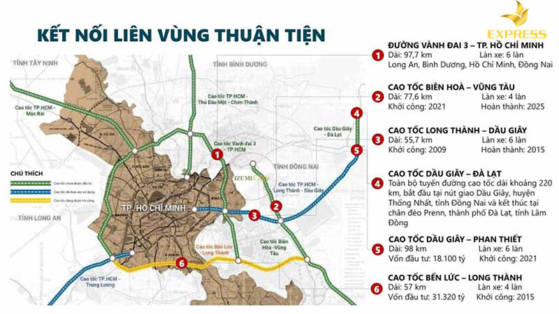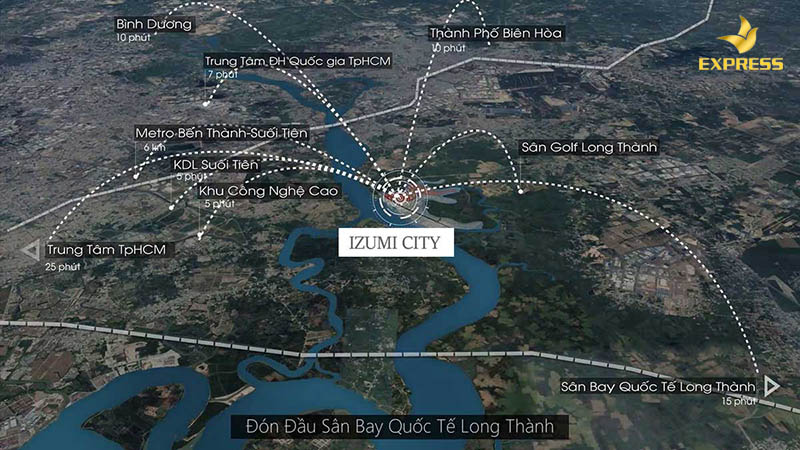 Điểm cộng của KĐT Izumi City Nam Long nằm ở vị trí ngay trung tâm của sự kết nối giao thông giữa các tỉnh/thành thuộc vùng Đông Nam bộ và khu vực Tây Nguyên. Bởi từ dự án chỉ mất vài phút để có thể di chuyển là tiếp cận nhanh chóng đến hệ thống giao thông huyết mạch liên vùng như cao tốc TP HCM – Long Thành – Dầu Giây, QL1A, QL51, xa lộ Hà Nội, đại lộ Mỹ Phước – Tân Vạn – Nhơn Trạch…