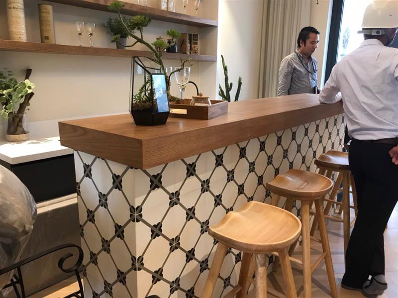 Trong căn nhà mẫu của dự án Aqua City chính là sự hội tụ của các chất liệu thiên nhiên bao gồm: đá cẩm thạch; gạch mosaic; đỗ tre – gỗ - nứa đã được dùng trong các đồ nội thất như bàn; ghế; kệ đã đượ sắp xếp gọn gàng, giúp tiết kiệm được tối đa diện tích, công năng sử dụng của ngôi nhà.