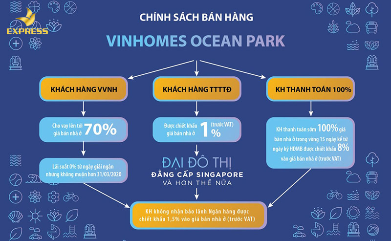 Càng gần đến thời điểm bàn giao và hoàn thiện, dự án Vinhomes Ocean Park càng nhận được nhiều sự chú ý và quan tâm lớn của khách hàng. CĐT Vingroup đã đưa ra rất nhiều những ưu đãi và chính sách hấp dẫn để giúp cho các nhà đầu tư khách hàng hiện thực hóa ước mơ sở hữu cho mình một căn hộ cao cấp. Mua chung cư Vinhomes Ocean Park vào thời điểm này, khách hàng sẽ nhận được mức giá tốt, ưu đãi cũng như những chính sách hỗ trợ trong đợt dịch. Hãy cùng BATDONGSAN EXPRESS tìm hiểu những ưu đãi đến từ CĐT của đại đô thị Vinhomes Ocean Park nhé!