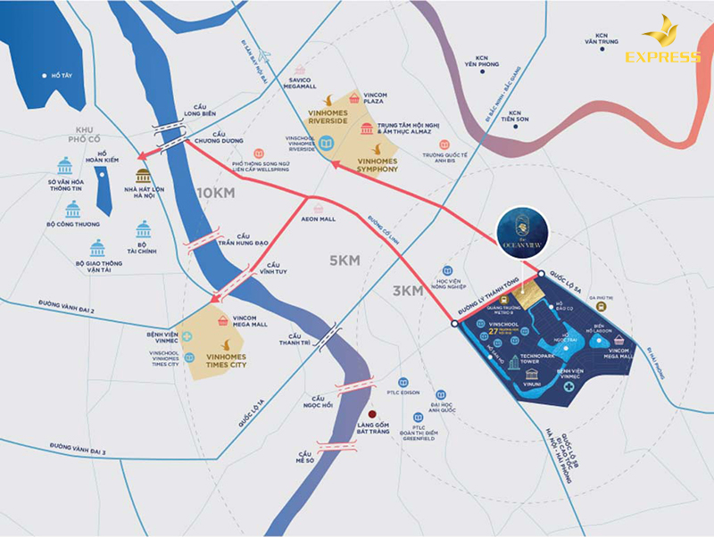 Đại đô thị tiếp giáp với ba cây cầu là Thanh Trì, Vĩnh Tuy, Chương Dương cùng với các trục giao thông khác như Đ. Nguyễn Văn Cừ, Xuân Quan, Ngọc Lâm đã tạo nên một kết nối hoàn hảo.