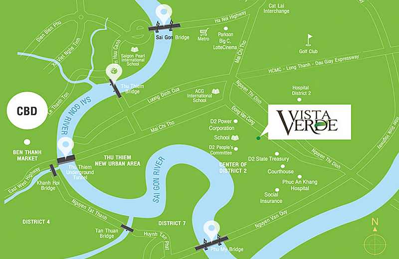 Vista Verde tọa lạc trong khu phức hợp Thạnh Mỹ Lợi, đây là khu vực hội tụ các trung tâm quan trọng của toàn quận 2 như: trung tâm hành chính; bệnh viện; trường học;… Đồng thời, dự án còn nằm ngay khu vực có hệ thống hạ tầng giao thông phát triển nhanh chóng và có nhiều tuyến đường huyết mạch.